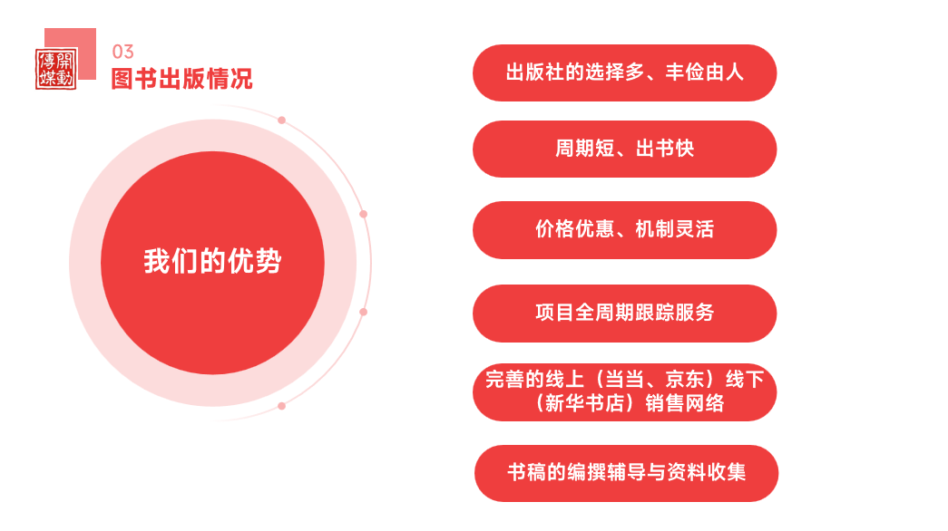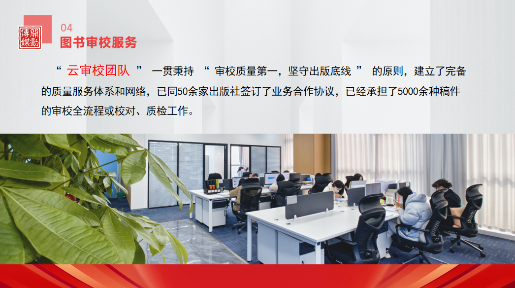 他回顾了公司自2011年成立以来的发展历程和围绕出版服务、审校服务、编纂服务为核心的发展定位。公司已为近5000位作者完成1200余种图书的出版工作,涵盖高校教材、学术专著、企业项目成果及核心技术转化、个人作品等多种类型。
